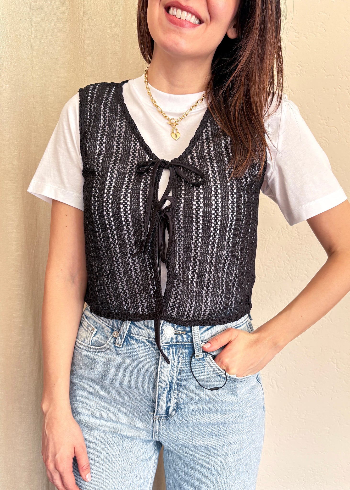 Gilet con lacci Molly Bracken. Meraviglioso gilet da indossare da solo, sopra ad una t-shirt o anche ad un vestito a spallina fina.