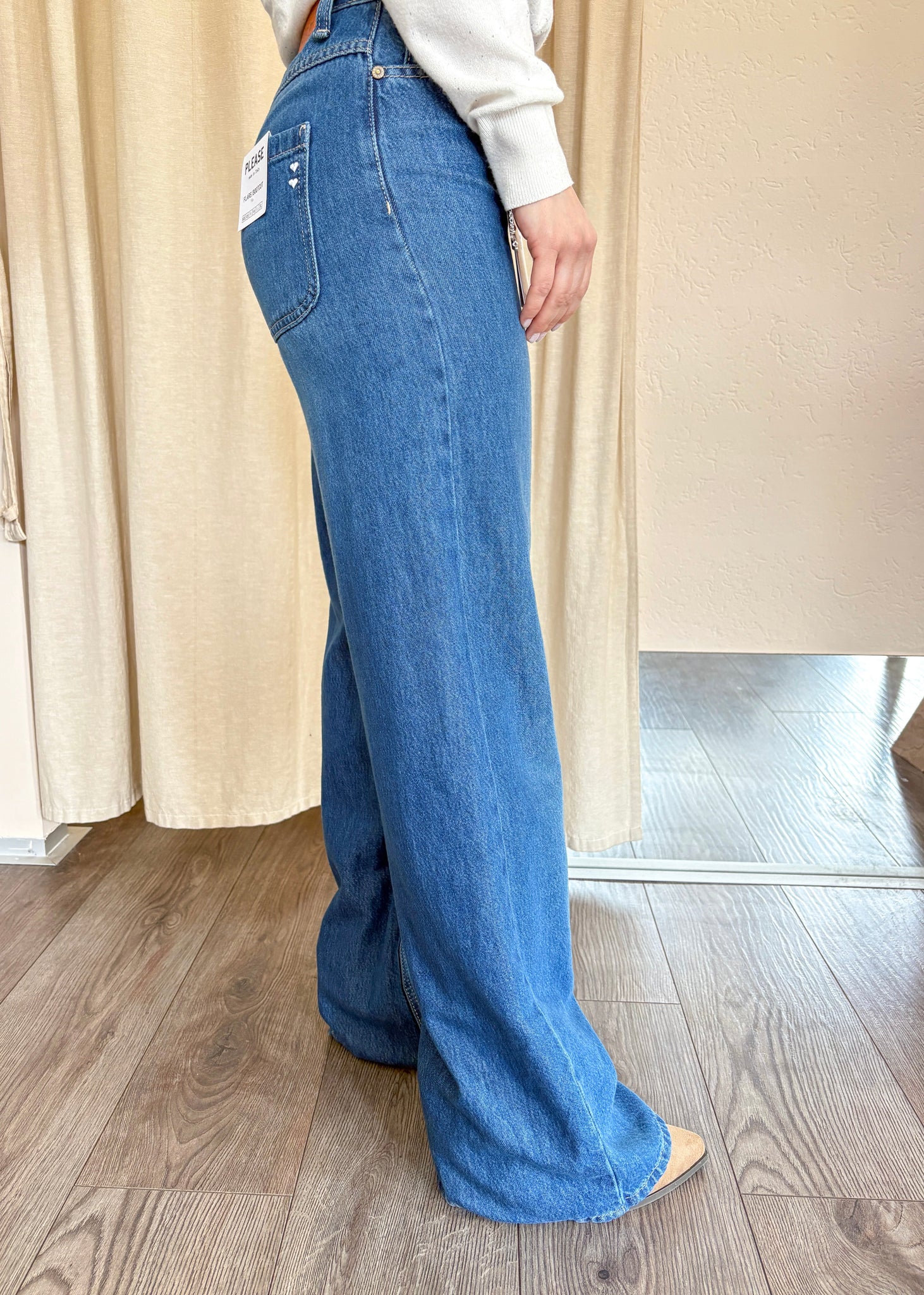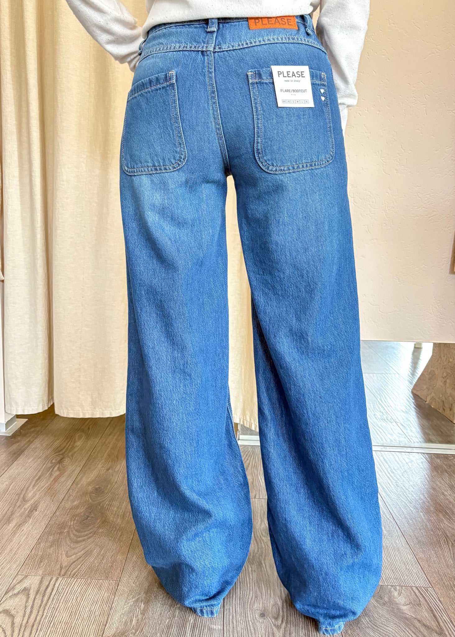 Jeans Please flare/bootcut, vita regolare e gamba ampia. 51% cotone, 49% lyocel