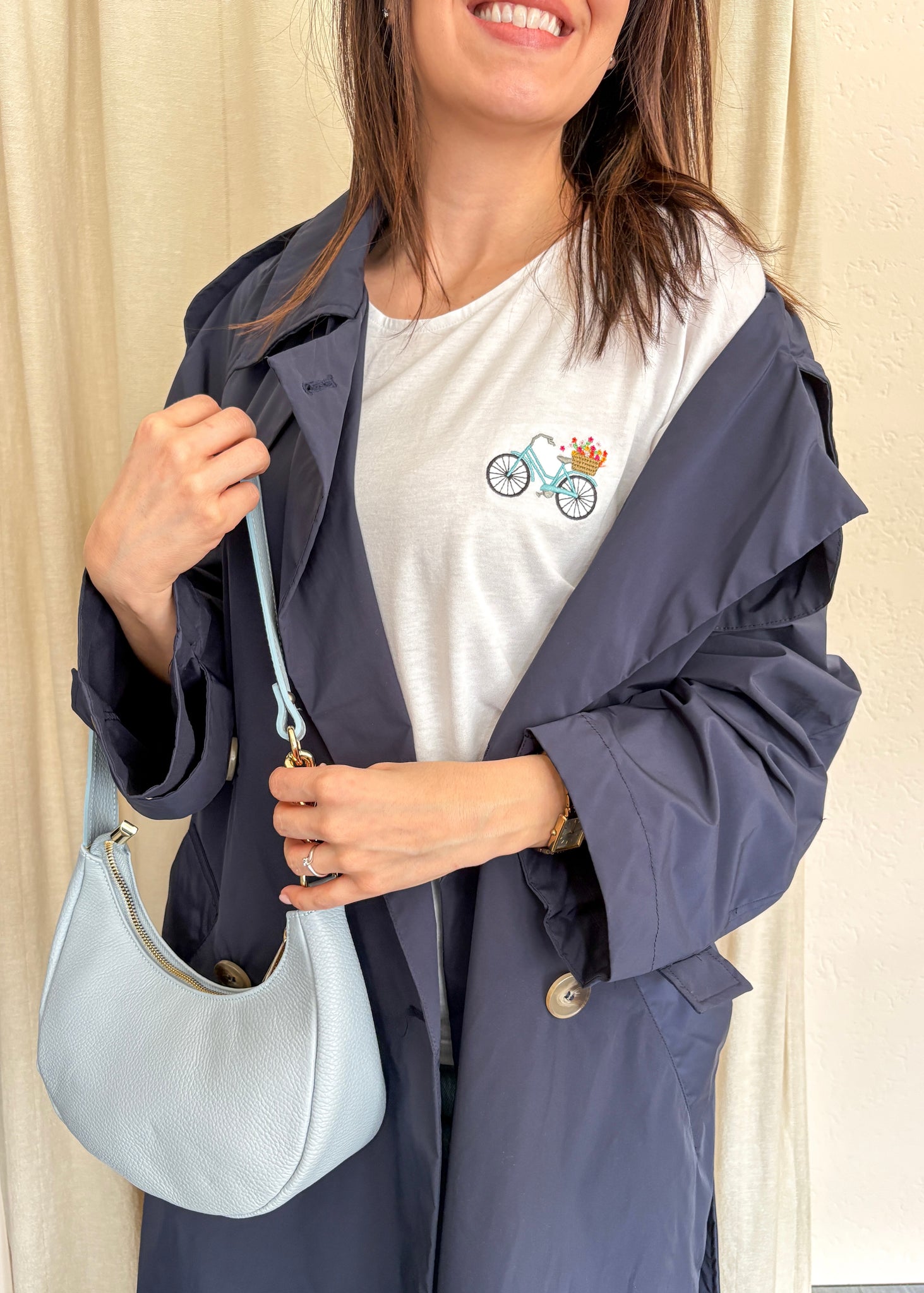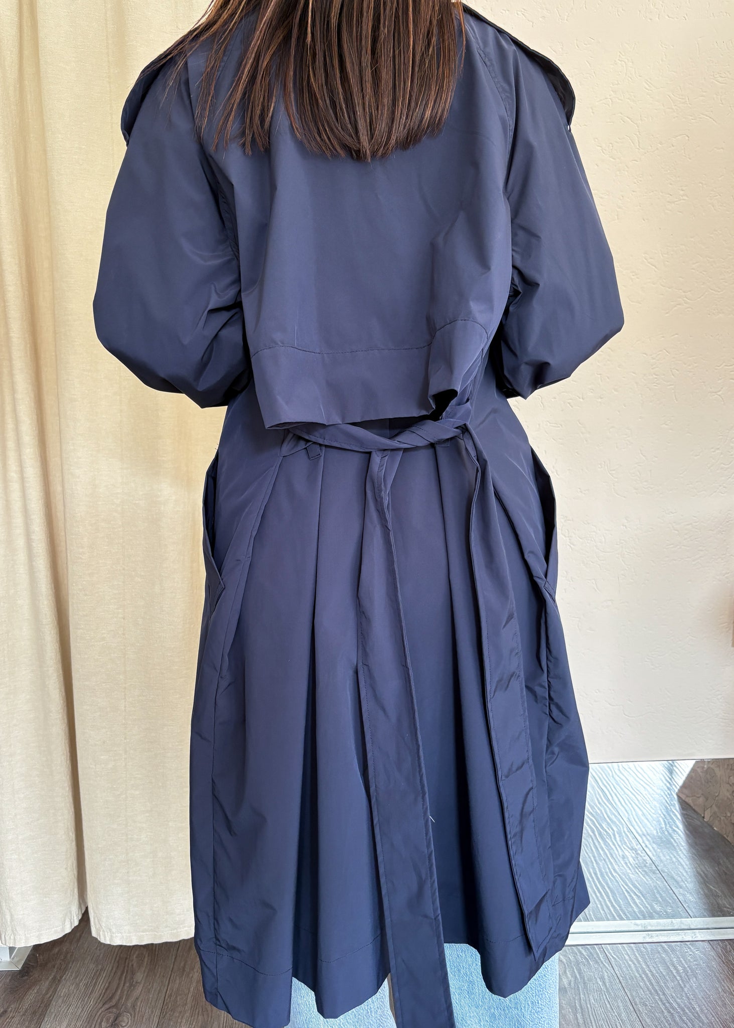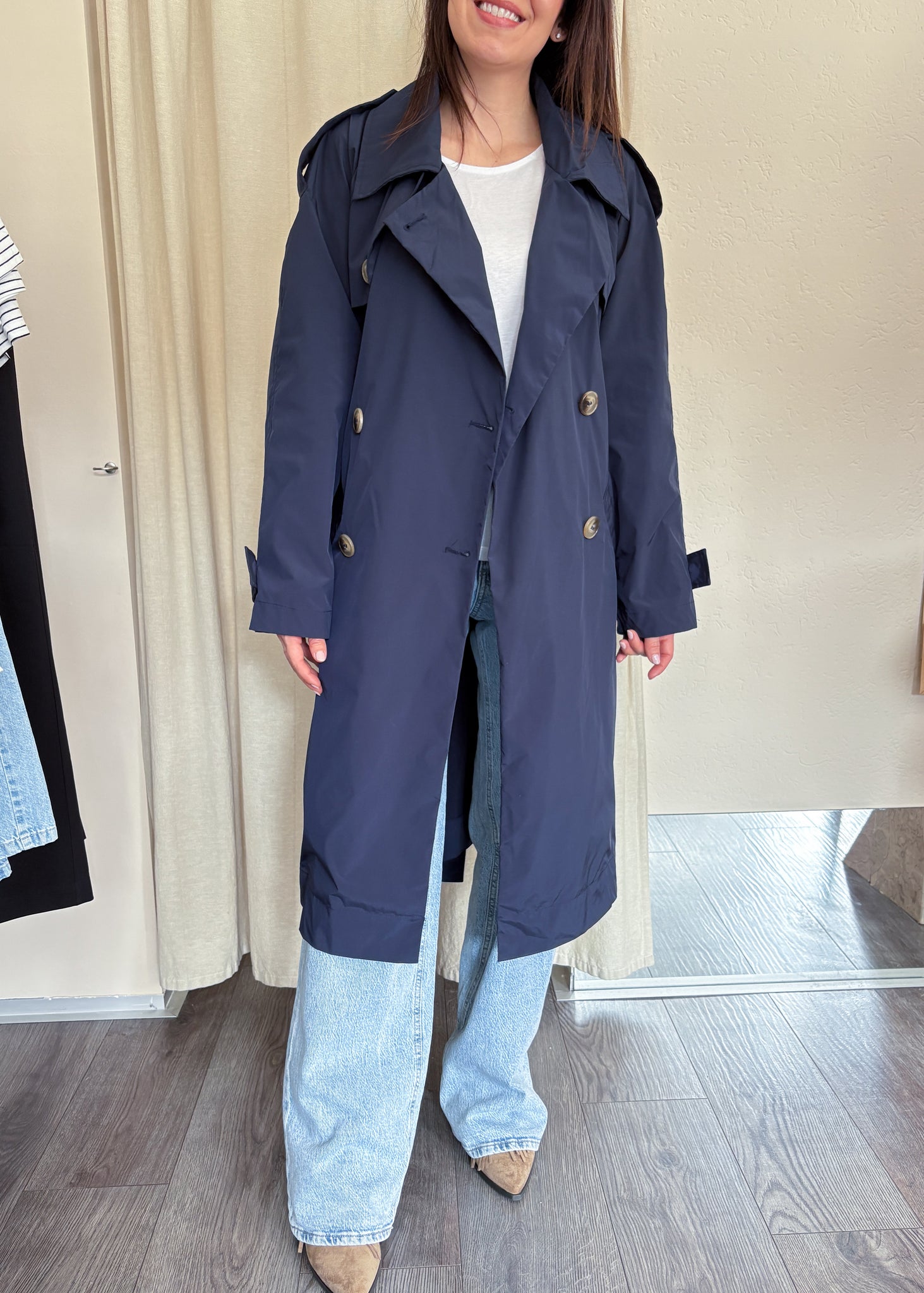 Trench Please in blu notte dalla vestibilità over. Una giacca senza tempo che non passa mai di moda, perfetta con ogni tipo di look. Tessuto tecnico.